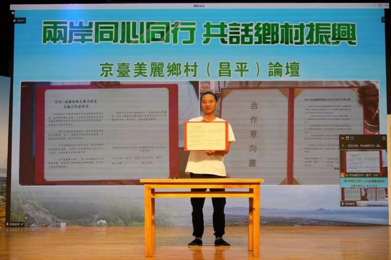 昌平区兴寿镇辛庄村作为今年获批的京台基层交流基地,该村农业合作社之一的西洋草莓专业合作社李建富理事长,与高雄高燕精致有机农业专区生产合作社黄贵民理事长,通过视频连线签订合作意向书,充分体现了两岸基层农业方面的交流意愿。论坛还邀请了在昌平创业的台胞和在高雄的北京河北同乡会创业者,分别讲述了两岸创业发展的经历,特别是在兴寿镇辛庄村的彩虹天使咖啡屋创办人台胞李绍嬅女士,分享了帮助听障人士就业自立自强的动人故事。