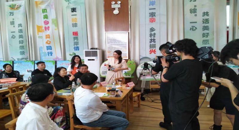 “把糯米压紧一点,再加一颗红枣”“来,我帮你缠上线”……两岸朋友一起动手包粽子,欢声笑语中,一根根吉祥的包粽丝线串起两岸的心。