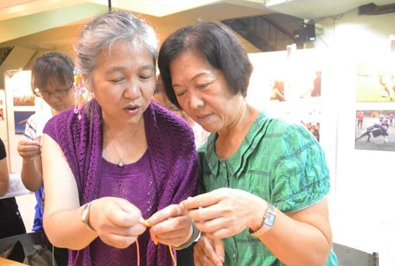 此次交流活动以社区、民间社团为基点,以文艺演出、艺术交流、艺术展览等多种形式打造新的文化亮点,活动现场还举办了书画笔会和手工艺互动活动。中国书法家协会会员沈莉书写的“同根”,向台湾民众传达了“两岸一家亲”的美好愿望;国家一级美术师、朝阳区美术家协会理事靳耀华现场创作了国画《国色天香》,作为礼物送给了李玉文会长。编织能手李贞、张莉华老师现场展示了用五彩线编织的工艺品,有栩栩如生的蝴蝶、有精美大方的手链,吸引了不少台湾民众的眼光。有些人还跃跃欲试,纷纷拿起彩线,跟老师们学着编织。高雄市正文团队里长庄文忠表示,台湾民众对文化非常感兴趣,有些人以前从来没有接触过这些传统手工技艺,这次交流活动提供了一个很好的机会。