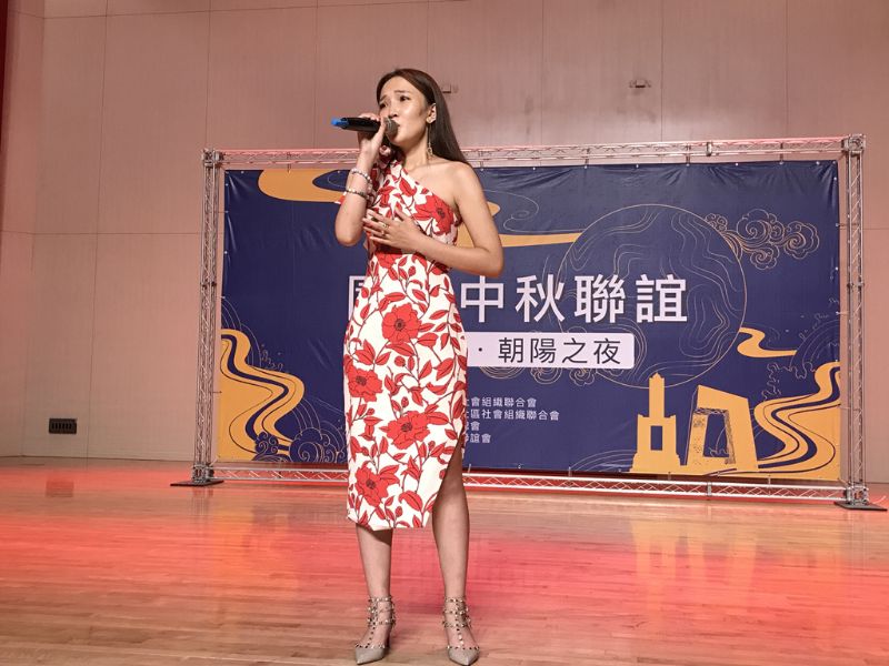 在两地观众的翘首期待中,晚会正式拉开帷幕,团结湖舞蹈队的《金鸡报春》一亮相就博得了满堂喝彩。红绿搭配的演出服喜庆、夺目,欢快高昂的乐曲声和轻盈优美的舞步令现场观众如痴如醉。随后,作为东道主的嘟比舞蹈团表演的群舞《酒干倘卖无》不仅赢得了现场观众的阵阵掌声,也唤起了北京连线现场观众们的美好回忆。由《酒干当卖无》作为主题曲的电影《搭错车》曾经红遍两岸,而这首经典的主题曲在两岸民众中也可谓耳熟能详。接下来,朝阳区垡头街道和谐艺术团的女声小合唱《外婆的澎湖湾》、女声独唱《橄榄树》、二胡独奏《二泉映月》轮番将晚会的气氛推向一个又一个小高潮。来自朝阳区的表演者们以悦耳动听的歌声、婀娜多姿的舞步、精彩纷呈的表演为到场的台湾同胞献上了一场视觉盛宴,更提前送上了中秋节的美好祝愿。