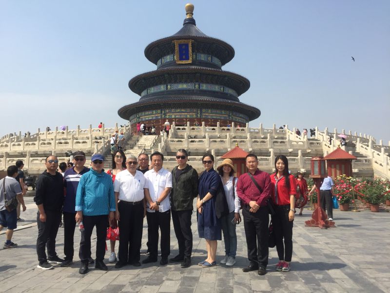 5月25日,东城区协助安排旺旺集团董事长蔡衍明一行到天坛公园参访,市台办交流二处处长金秀清、区台办主任王宝祥陪同。