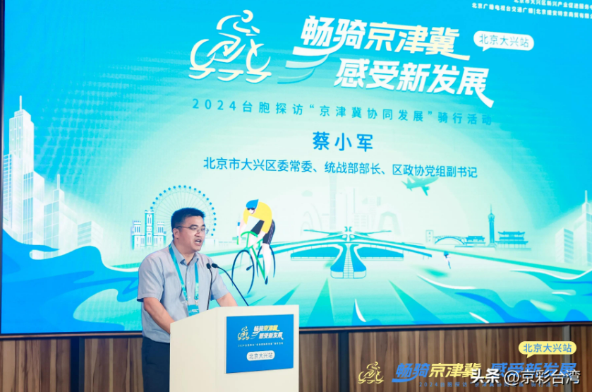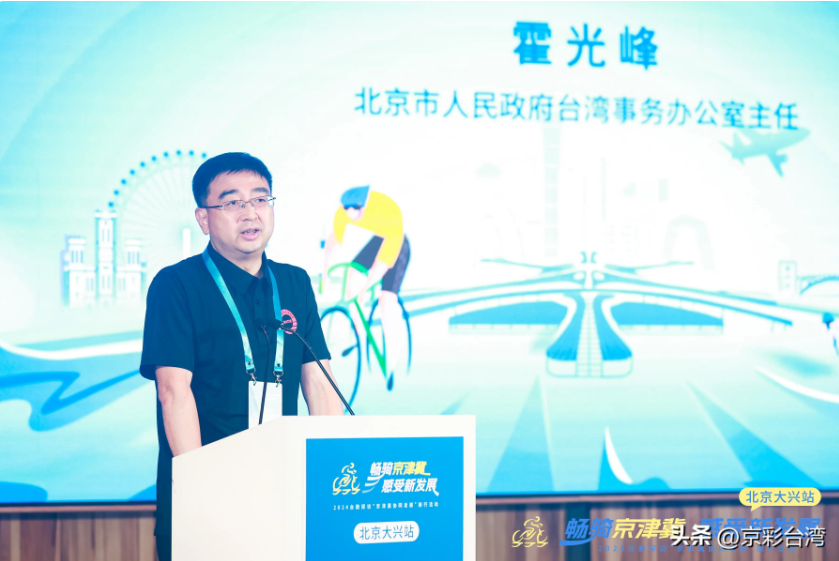 霍光峰在致辞中指出,两岸交流合作大势不可挡,两岸同胞走近走亲意愿不可违,我们将一如既往尊重、关爱、造福台湾同胞,助力台胞分享中国式现代化全面推进的机遇和成果,希望两岸同胞通过骑行以车会友、增进友谊、爱上骑行、爱上京津冀。蔡小军表示,大兴区是京津冀协同发展的桥头堡和新高地,期待两岸企业家走进大兴、投资大兴、兴业大兴,希望骑行活动成为沟通两岸交流的一座新桥梁。
