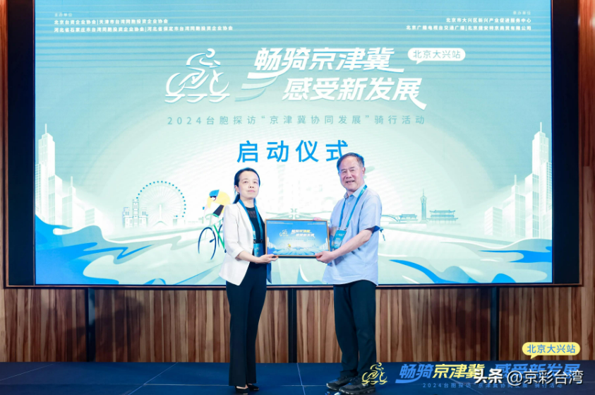 6月21日,2024台胞(台青)探访“京津冀协同发展”骑行活动在大兴区正式启动。本次活动由北京台资企业协会、天津市台湾同胞投资企业协会、河北省石家庄市台湾同胞投资企业协会和保定市台湾同胞投资企业协会共同主办,北京台协自行车俱乐部、北京广播电视台交通广播、捷安特京商贸有限公司、大兴区新兴产业促进服务中心承办。北京市台办主任霍光峰、大兴区委常委蔡小军、市台办副主任刘先传、大兴区副区长周新蓉等出席启动仪式,来自京台两地80余名企业家和嘉宾参加活动。
