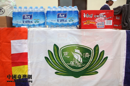台湾慈济基金会捐助的方便面和水。(中国台湾网记者?王怡然?摄)