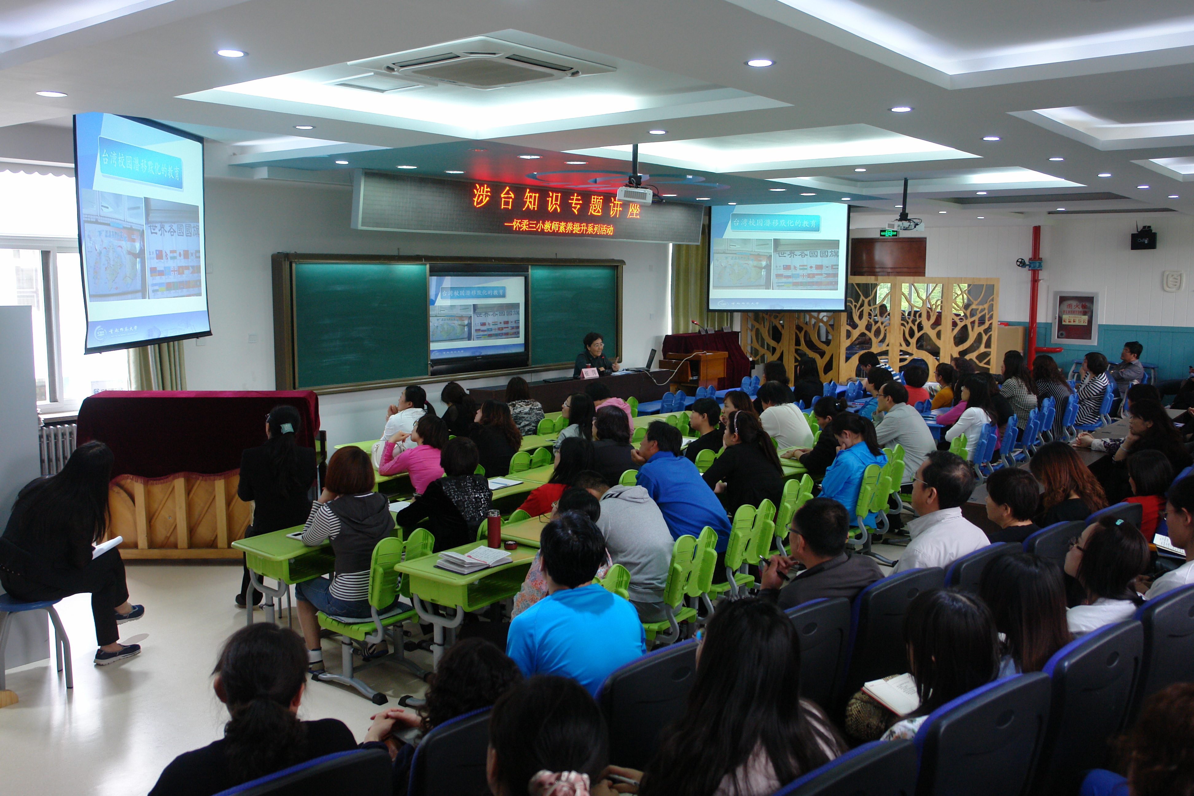 ????5月6日,怀柔区台办邀请首都师范大学台湾研究室常务主任崔萍教授,对怀柔区第三小学教师进行涉台知识专题讲座。讲座重点围绕着当前两岸关系、台湾教育基本情况及特点展开。深入浅出,紧密结合教育实际,对教师们了解台湾形势,明确涉台教育重要性,做好校际对台交流工作具有重要指导意义。(怀柔区台办撰稿)