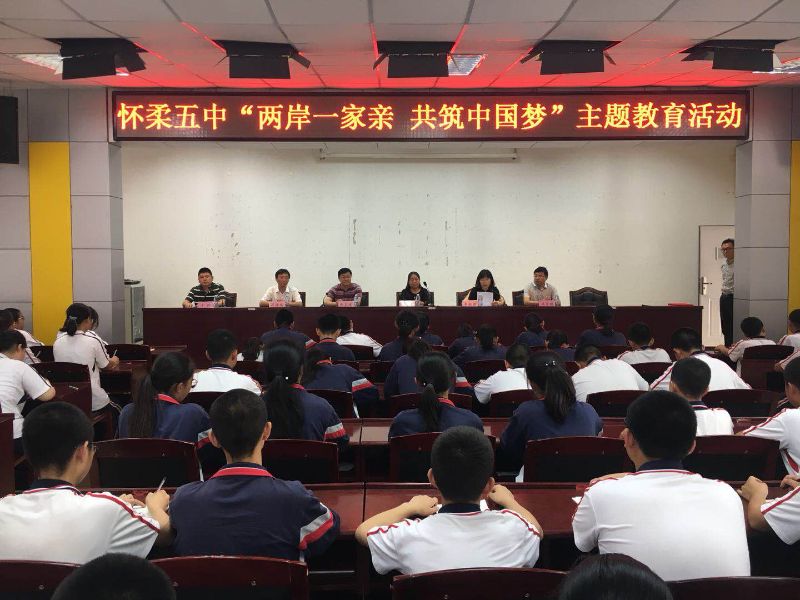 近一年来,怀柔第五中学涉台工作基础扎实,成效明显。学校领导重视、组织健全、活动经常、交流深入。会上,由区台办副主任李淑君宣读《怀柔区教委、区台办授予怀柔区第四中学青少年涉台教育基地的决定》。随后区台办、教委领导为怀柔五中授牌、颁发荣誉证书。