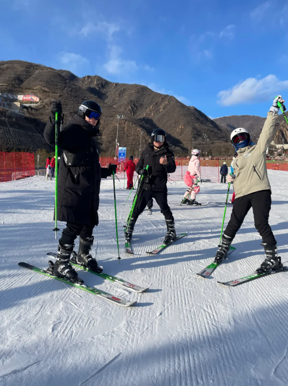 室外零下十几摄氏度的气温让同学们的脸颊冻得泛红,却无法冷却同学们心中的热情。入口处,雪道介绍展板吸引了众人的目光。这里既有适合新手的大众体验区,也有海陀穿越、银河雪道等难度各异的雪道,其中专家级雪道高达70%的坡度更是引发了同学们的热烈讨论。“专家级雪道只有奥运选手才能驾驭吧?得多刺激啊!”你一言我一语,热烈的交流和讨论让寒冷的空气也逐渐升温。