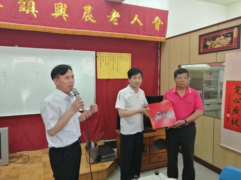 兴谷街道一行在屏东县兴农里社区老人会座谈,并互赠纪念品