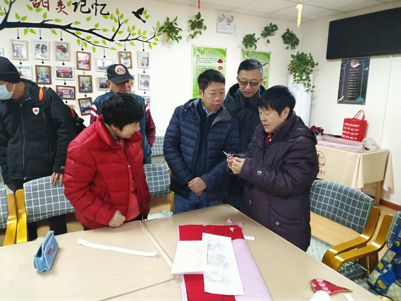 ??? 参访团一行先后参观社区党建文化墙、示范儿童之家、室内健身室、区图书馆龙府分馆、养老驿站等,与社区居民进行互动、交流,并与剪纸技艺非物质文化遗产传承人、“中国巧嫂”郝兰英一起现场体验趣味剪纸,在党群活动室观看欢迎舞蹈、非遗作品模特展示。