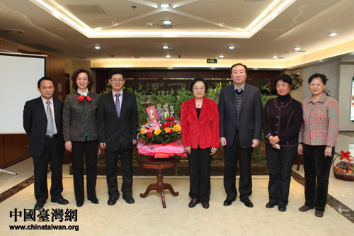中国台湾网12月30日北京消息? 12月27日,全国政协副主席、台盟中央主席林文漪一行前往在京台资企业新世纪宝岛眼镜商贸有限公司走访慰问。