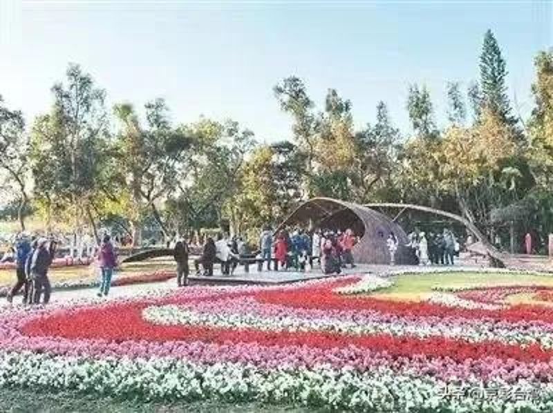 台北市民和游客在士林官邸赏花游园。