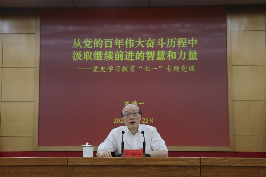 在庆祝中国共产党成立一百周年之际,按照中央关于党史学习教育的部署要求,6月22日上午,中央台办主任刘结一以《从党的百年伟大奋斗历程中汲取继续前进的智慧和力量》为题,为全体党员干部讲党史学习教育专题党课。