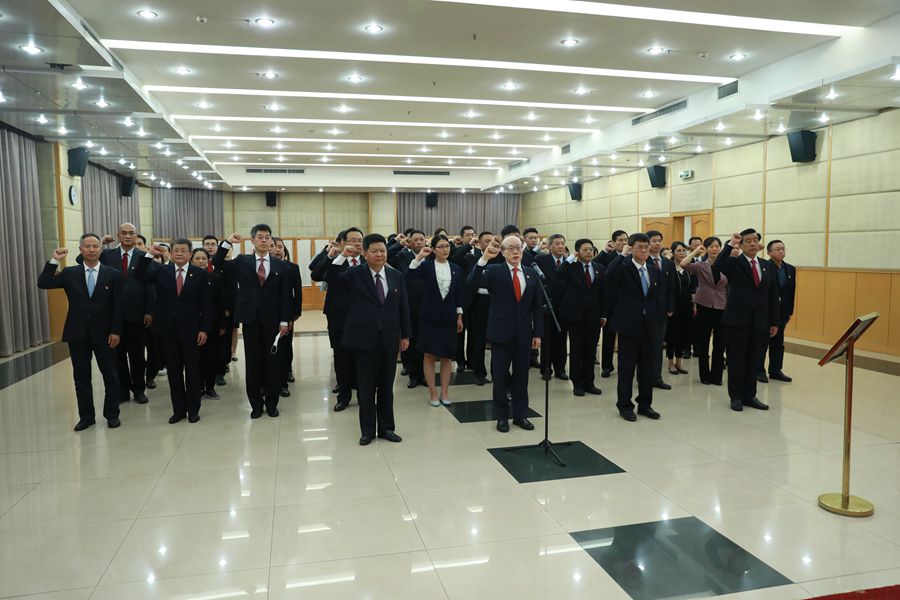 为庆祝中国共产党成立100周年,践行誓言担当使命,6月25日,中央台办举行党员重温入党誓词暨新党员入党宣誓仪式。中央台办主任刘结一和办领导班子成员、中央台办党史学习教育领导小组成员、机关党委(人事局)党支部全体党员、各党支部组织委员,以及2名新入党同志参加仪式。