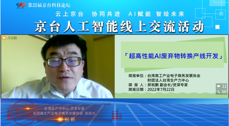 由北京国际科技合作中心(北京港澳台科技合作中心)主办、北京市绿色产业发展促进会、北京牡丹电子集团有限责任公司、台湾智慧产业电脑物联网协会、台湾生产力中心联合承办、主题为“云上京台 协同共进 AI赋能 智绘未来”的第25届京台科技论坛分论坛—京台人工智能线上交流活动于2022年7月22日下午以牡丹融媒体直播方式在线上举办。本次活动旨在加强两岸科技经济交流合作、推进两岸产业融合发展,释放两岸人工智能发展潜力,推动产业数字化智能化转型。北京国际科技合作中心(北京港澳台科技合作中心)副主任王旖琪、台湾智慧产业电脑物联网协会副理事长曾宪健、京台产业园总经理康京围、台湾商工产业电子商务发展协会副会长郑祝鹏等领导,两岸人工智能领域专家、社团和企业代表等近八百人参加会议。在国际中心的指导和绿促会的协调推动下,京台产业园与台湾商工产业电子商务发展协会在本次活动中达成了战略合作协议的签署。