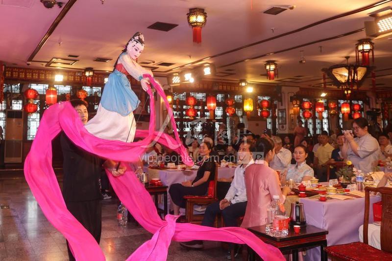 2023年9月6日, 演员在北京举办的“茶之缘”两岸茶人品茗会上表演木偶戏。