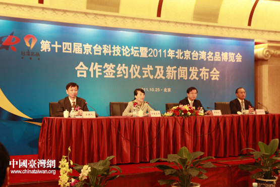 第十四届京台科技论坛暨2011年北京台湾名品博览会新闻发布会现场(中国台湾网 陈宁 摄)