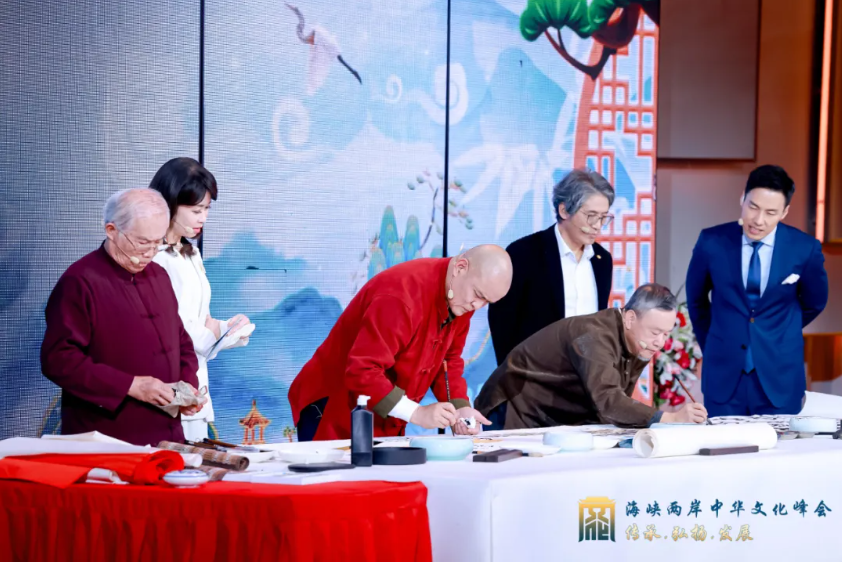 “两岸书画名师对话”活动作为本届峰会分论坛之一,邀请12位两岸书画界的巨擘名师与会,嘉宾阵容豪华,其中包括:“共和国首席画师”刘宇一,他是连续四次创华人画家作品最高价位纪录的艺术大师,正阳门城楼、天安门城楼、毛主席纪念堂…北京中轴线上的关键建筑中,都珍藏陈列着他的画作;中国书法家协会名誉主席、中央文史馆馆员苏士澍,他师从启功等多位名师,前后多次在全国两会提交推广汉字文化和书法教育的提案,被授予中国出版界最高荣誉奖"韬奋出版奖”;台湾田园派书画大师、台湾美术文化基金会常务董事李轂摩,蒋经国曾为他的画作大为赞叹;台湾艺术大学书画艺术学系教授、台湾中华画院国画院院长蔡友,他在35岁时就曾与张大千、黄君璧等大师共同创作长卷。此外,还邀请到了李苦禅之子,中央文史研究馆资深馆员、清华大学教授李燕;李可染之子,李可染画院院长、中国美术家协会河山画会会长李庚;台湾著名书法家杜忠诰;台湾前台北艺大美术学院院长林章湖;中国国家画院一级美术师、中国国家画院国画院研究员史国良;中国人民大学艺术学院教授、博导,郑州大学书法学院院长郑晓华;台湾文联台湾书法家协会会长沈荣槐;台湾中国美术协会理事长李沃源。