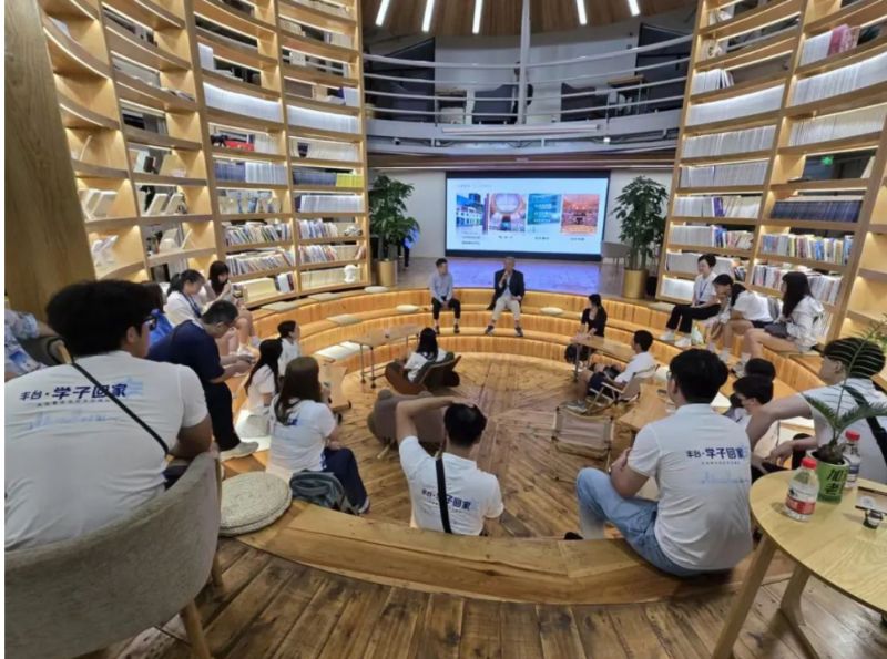 在TOPMAKER咖啡厅,“园区通过城市更新和升级改造,将老旧厂房再利用,把一群有活力、有创造力的年轻人聚集在这个有温度的创新创业园区。”园区负责人介绍了园区的基本情况和2025青创村“村AI+”邀请赛情况,并欢迎大家报名参赛。园区台湾文创专家甘老师讲述了自己25年来,在大陆推广中华优秀传统文化、培育和发展文创园区的故事。参访团纷纷向他提出了各类关于创业创新的问题,大家面对面进行了互动交流。“欢迎大家积极来实习就业,有很多很好的政策支持帮助我们创新创业,实现梦想”,他分享道。