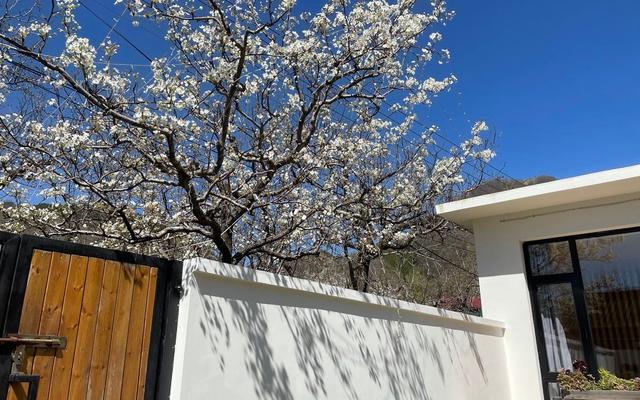 与梯子峪村仅有一个山头之隔的西牛峪村,开展民宿项目更早一些。西牛峪村以栽培玉露香梨为主,曾被国家农业农村部确定一村一品示范村。每到梨花盛开之际,村里的梨花小院就迎来了颜值最高时刻,小院被梨花掩映其中,极具诗情画意。