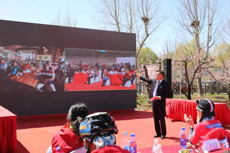 ? ? ? ?人间最美的京郊四月天,春意盎然,4月13日上午,“京台两地共赏桃花——两岸同胞骑行桃花海和京台乡村视频连线交流”活动在北京市平谷区享有“天下大桃第一镇”的大华山镇,也是2020世界休闲大会的分会场举行。