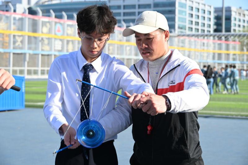 “北京同学和我们一样,特别活泼,相处起来很自然?!碧ㄍ甯咧猩畎⒌乱槐叩髡罩竦钠胶?,一边分享感受。在操场上,他随着老师“右手往上提,左手往下跟”的指导抖动空竹,逐渐掌握节奏。李阿德告诉记者,在台湾,抖空竹称作“扯铃”,他小时候接触过,这次来到北京西城又学到一些新技巧。谈到对北京八中的印象,他表示,第一眼就看到了校园里的孔子雕像,浓厚的文化氛围让人肃然起敬。