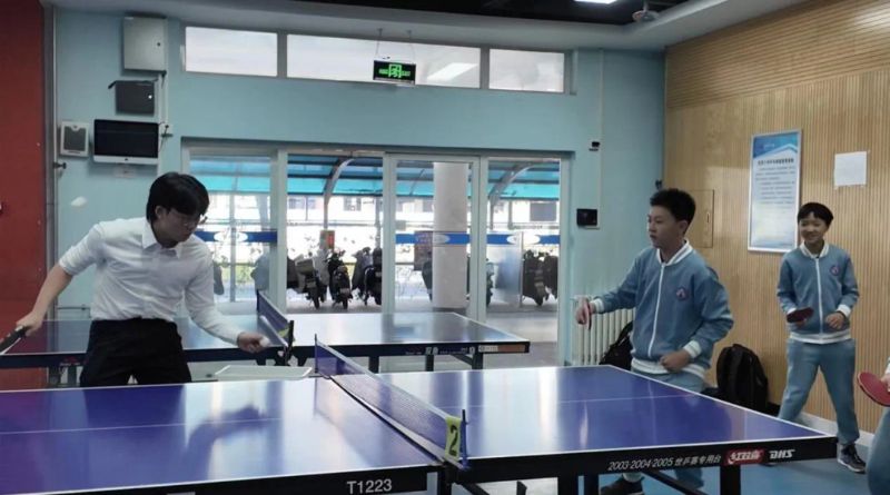 近日,坐落在西城区的北京市第八中学(以下简称“北京八中”),一场交流活动火热进行。来自台湾宝吉祥文史教育协会一行近40名师生与北京八中师生一同抖空竹、写毛笔字、切磋乒乓球球技。
